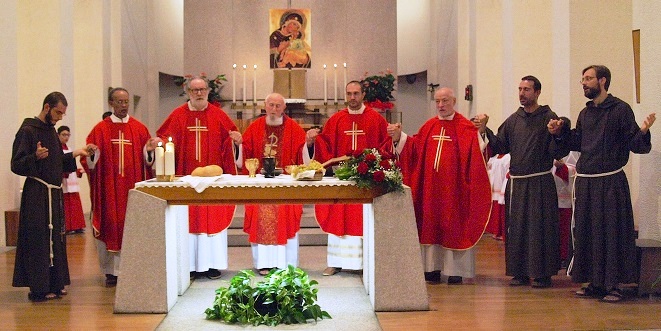 ![]() Nella foto sopra, sono ritratti i frati attualmente presenti nella nostra parrocchia. Partendo da sinistra si riconoscono: Padre Luca Savoldelli tra noi da fine 2023, Padre Giuseppe Panzeri (Guzep), frate nostro parrocchiano, che talvolta torna tra noi, Padre Vitale Maninetti, l'attuale Parroco, tra noi dal settembre 2020, Padre Giancarlo Mandelli tra noi dal settembre 2017, Padre Gabriele Barbi tra noi dal settembre 2019. ![]() Nella foto sopra, scattata Domenica 17 Settembre 2017, in occasione del pranzo comunitario della Festa dell'Oratorio sono radunati alcuni dei frati presenti nella nostra parrocchia in questo periodo e nel recente passato. Partendo da sinistra si riconoscono: Padre Fabrizio Meola attualmente tra noi, Fra Paolo Bottinelli che è stato tra noi dal settembre 2011 fino all'estate 2017, Padre Tommaso Grigis che è stato nostro Parroco tra il 1997 e il 2008, Padre Luigi Boccardi che è stato nostro Parroco tra il 2013 e il 2020, Padre Saverio Corti che è stato nostro Parroco tra il 2008 e il 2013, Padre Giulio Pasquini tra noi dal settembre 2002 al novembre 2019, dopo esserlo stato anche dal 1981 al 1991, Padre Luca Mantovani che è stato tra noi dal settembre 2017 all'estate 2019, Padre Giancarlo Mandelli anche lui attualmente tra noi. ![]() Nella foto sopra, risalente al Settembre 2015, sono presenti anche: Padre Ismaele Bertani (al centro) che è stato nostro Parroco tra il 1988 e il 1997 e nell'occasione festeggiava i suoi 60 anni di sacerdozio, Fra Paolo Bottinelli (il secondo da destra) che è stato tra noi dal settembre 2011 fino all'estate 2017, Padre Tecle (il secondo da sinistra) uno dei diversi frati eritrei che in questi ultimi anni sono venuti da Milano ad aiutare per celebrazioni e confessioni, Matteo Stefanoni (il primo da sinistra) e Mattia Senzani (il primo da destra), due giovani della nostra parocchia che a quel tempo avevano da poco emesso la loro prima professione nell'ordine dei frati minori cappuccini. Cliccate qui per vedere l'elenco completo dei Frati presenti tra noi dalla fondazione della nostra parrocchia (si suggerisce di attivare uno zoom del 200% per leggere). |